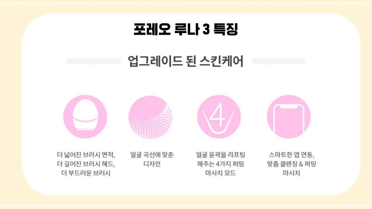 - 브러시 재질: 포레오 루나3는 실리콘 브러시를 사용하여 위생적이며, 교체가 필요 없습니다.